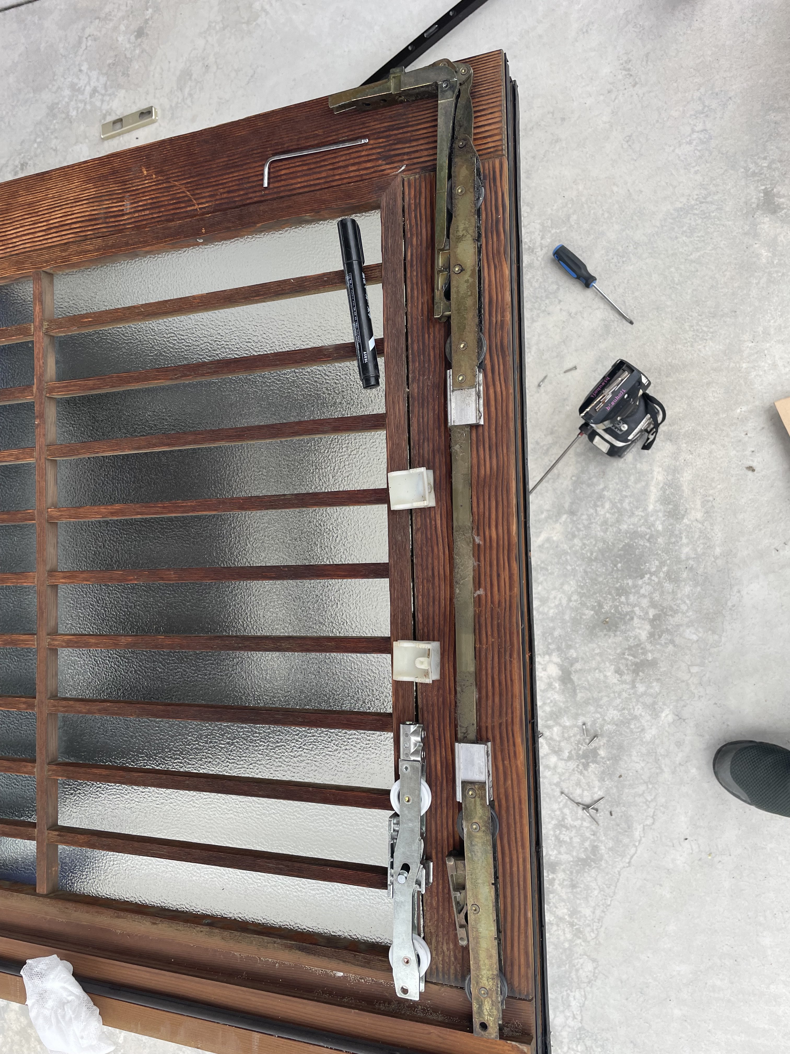 ヘーベシーベ引戸は構造が複雑で、可動部の摩耗や金物の劣化が原因で動きが重くなることがあります。今回は、お客様のコスト面への配慮もあり、可能な限り既存部材を活かしつつ、必要最低限の金物交換で調整を行いました。丁寧に可動部の確認を行い、引戸がスムーズに動くようミリ単位で微調整を実施しました。