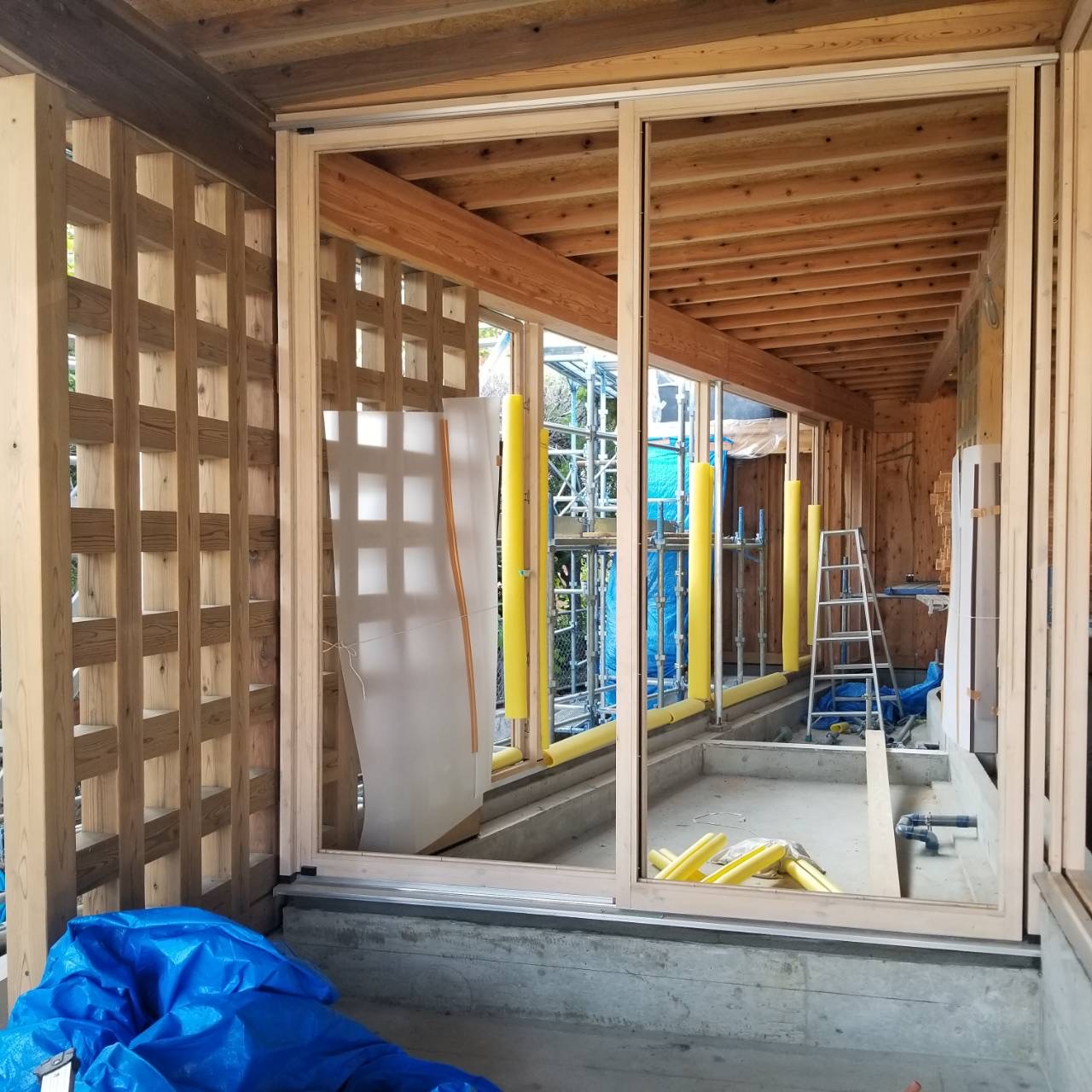 今回の現場では、開口部が大きく重量のある「ヘーベシーベ(大型木製引き戸)」をはじめ、複数種類の木製サッシを施工しました。