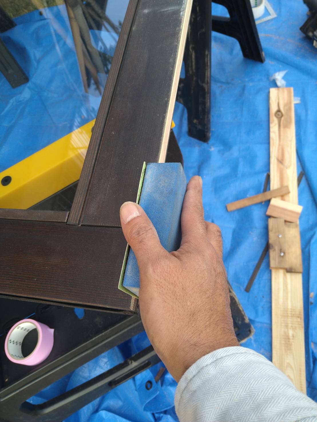 まず、ヘーベシーベ引戸の不具合原因を正確に特定するため、建付け・金物・戸車・レールなど細部の調査を実施。微妙な建付けの狂いや、鴨居のわずかな下がりが動作不良の原因となっていました。現状で鴨居の下がりを修正することは困難なため、障子上部の切り詰めを行うことで、本来のスムーズな操作性を回復させました。