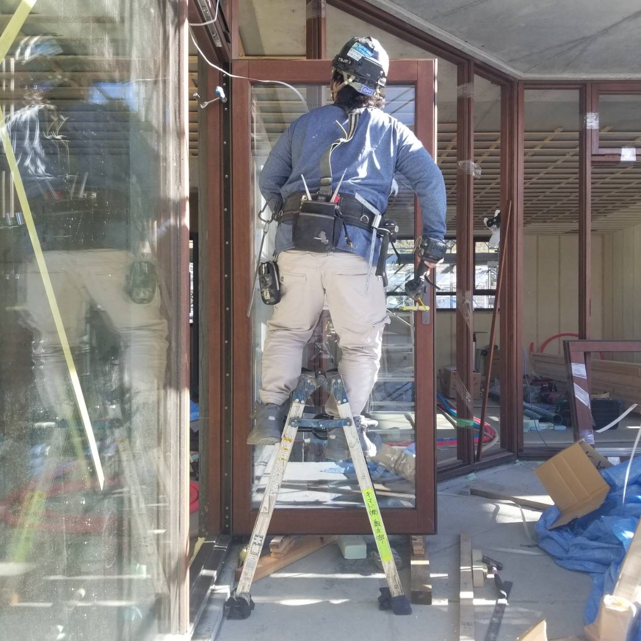 重量級サッシの取り付けは難易度が高い作業でしたが、事前準備とチームワークにより無事に完了できました。今後も建物に合わせた最適な木製サッシ施工をご提案できるよう努めてまいります。