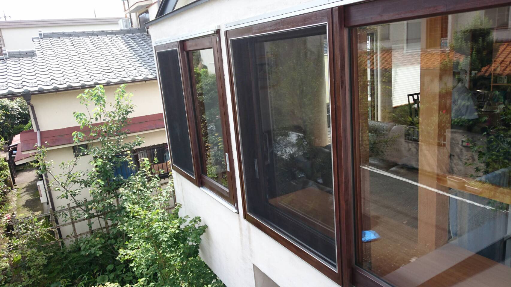 木製サッシの塗装が長年の紫外線や風雨により劣化してしまい、見た目が古く感じるためきれいに塗り直してほしいとのご依頼でした。