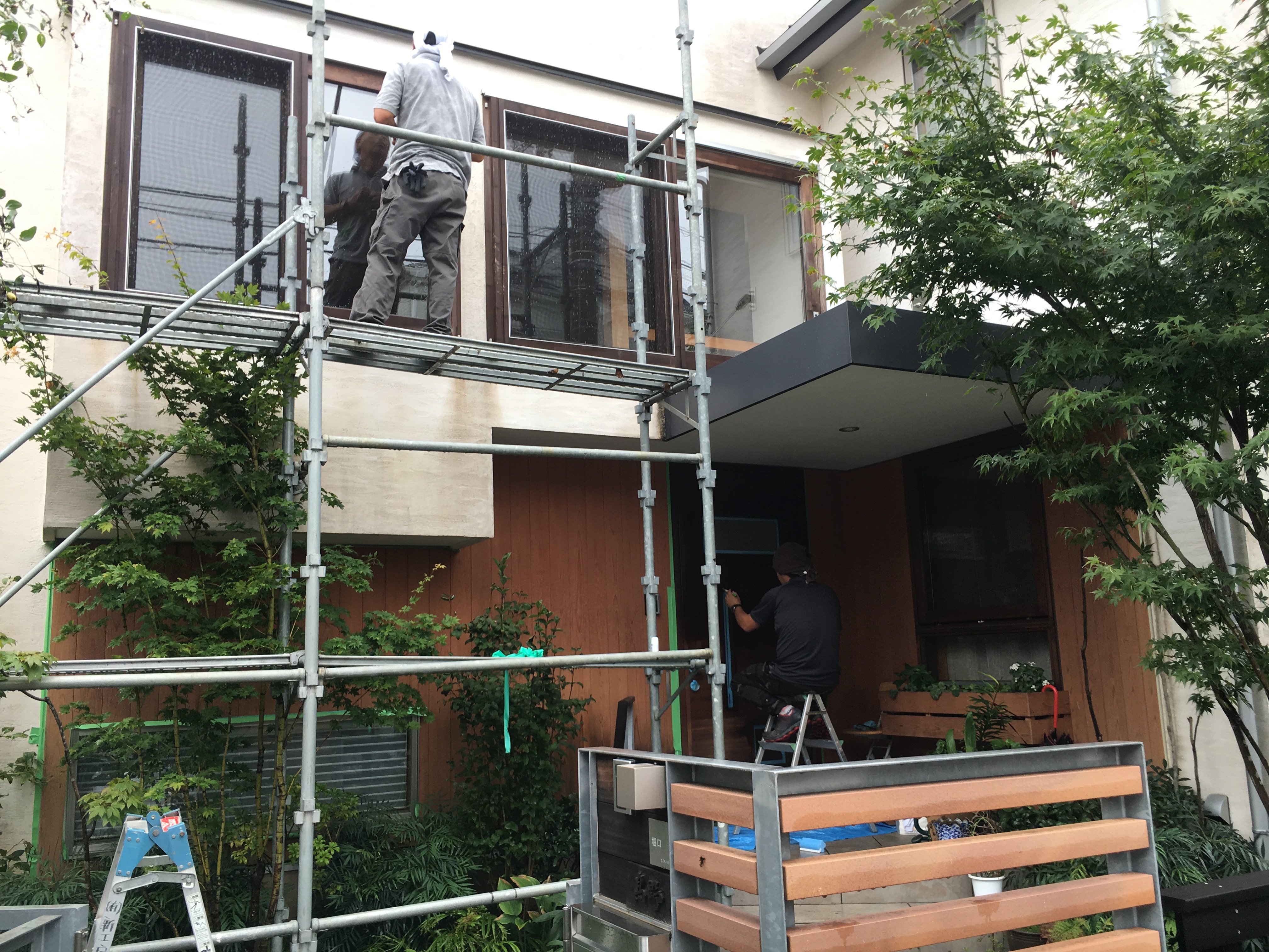 木製サッシは金属サッシに比べて風合いが魅力ですが、同時に劣化しやすい素材でもあります。そのため、今回の補修ではまず傷んだ塗膜の除去から丁寧にスタート。ケレン作業で劣化塗装をしっかり落とし、木部が本来持つ質感を損なわないよう注意しながら下地を整えました。